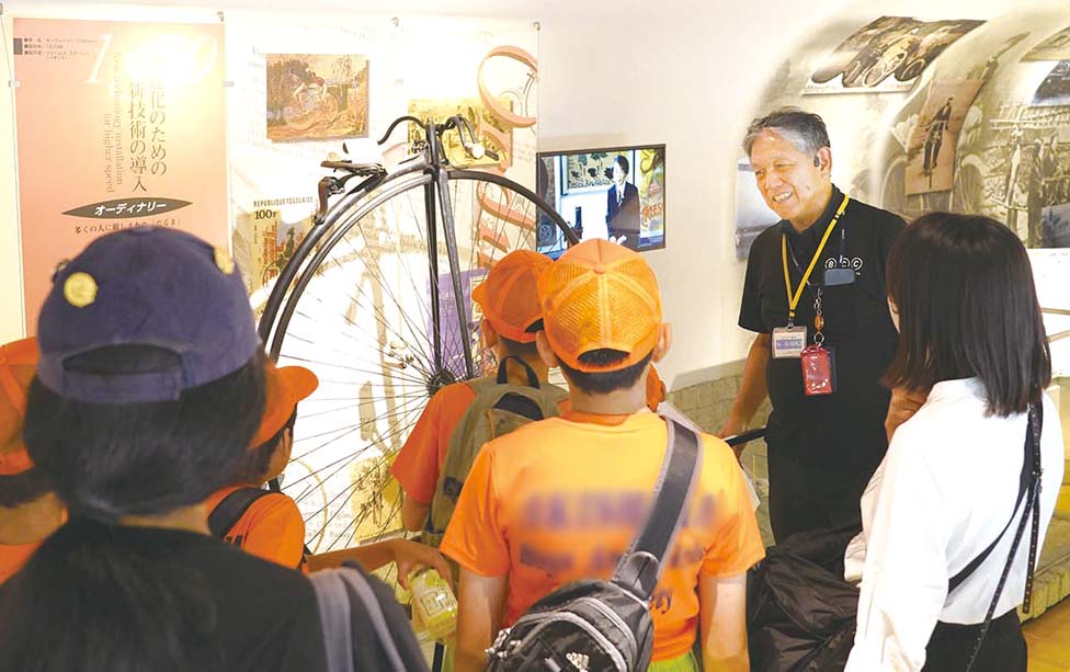 加えて、相談や教室の間の時間に三日とも、森下学芸員による「自転車広場」展示解説ツアーが開催されました。自転車技術史の変遷をはじめとするさまざまな見どころを、専門家が熱を込めて紹介する貴重な機会で、こちらも夏休みの自由研究などの題材としても活用いただけたものと思います。