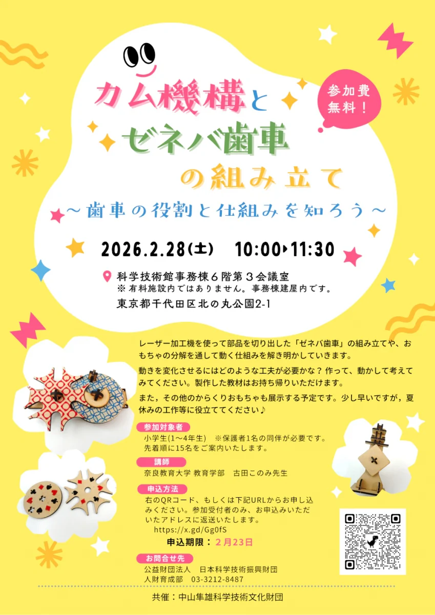 楽しい工作教室「カム機構とゼネバ歯車の組み立て」【2月28日開催・無料】